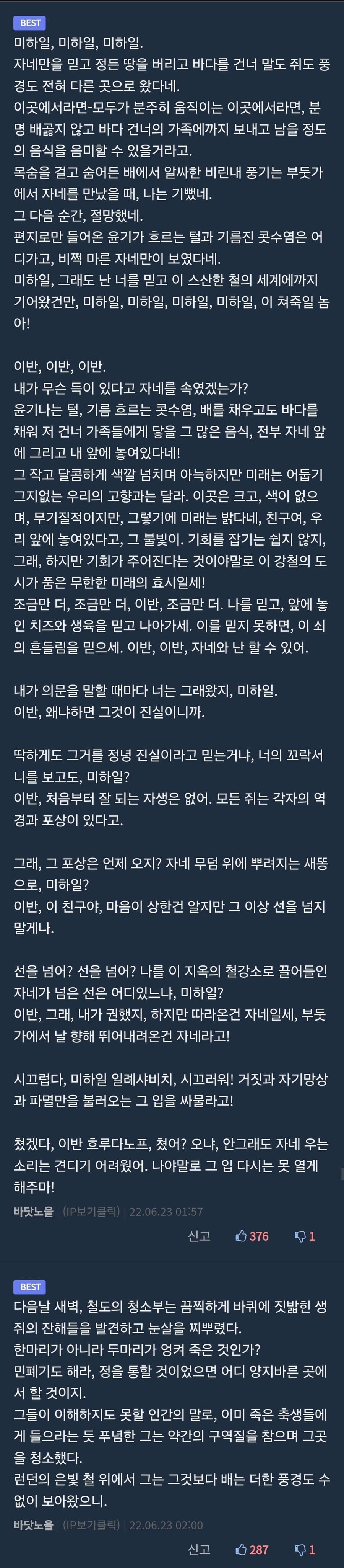 "도시 쥐 이새끼야... 도시는 지상 낙원이라며!!!"