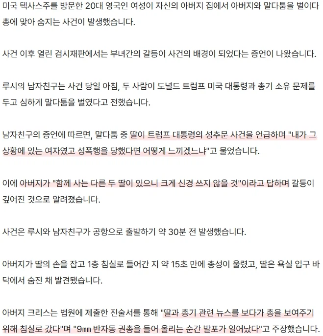 "아빠는 트럼프가 왜 좋은데?"…'정치 얘기'하다 딸 살해한 아빠.news