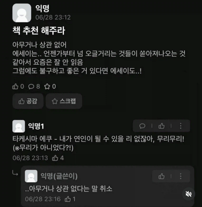 "책 추천좀. 아무거나 상관없음"