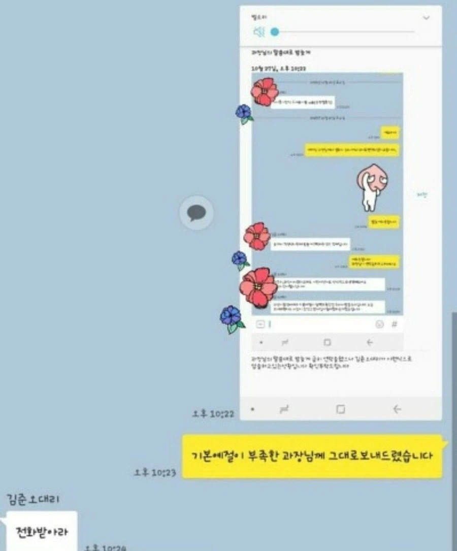 "과장이 좀 옛 세대라 기본 예절이 부족한거 알잖습니까."